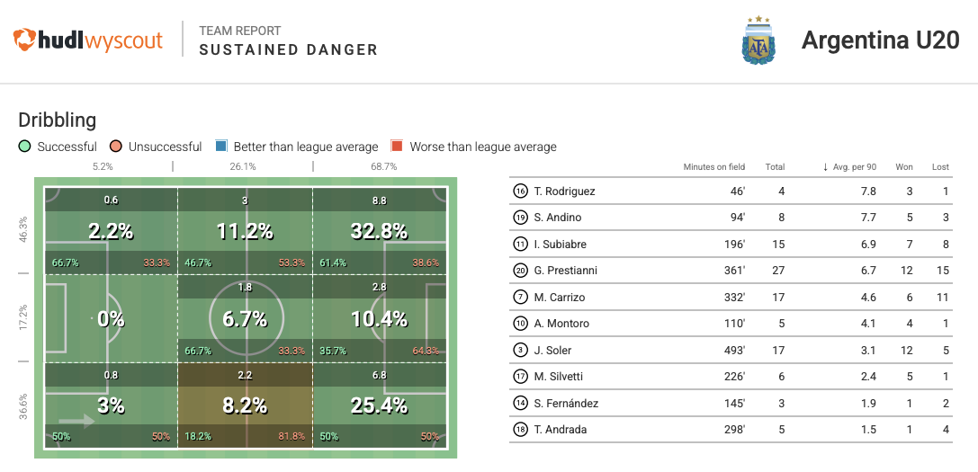 Strong tournament showings like these have inevitably pushed Argentina’s brightest talents into the European shop window. The archetypal modern South American exports: relatively low-risk, high-upside profiles suited to developmental environments. With Wyscout, the video coverage makes spotting this easier than ever.