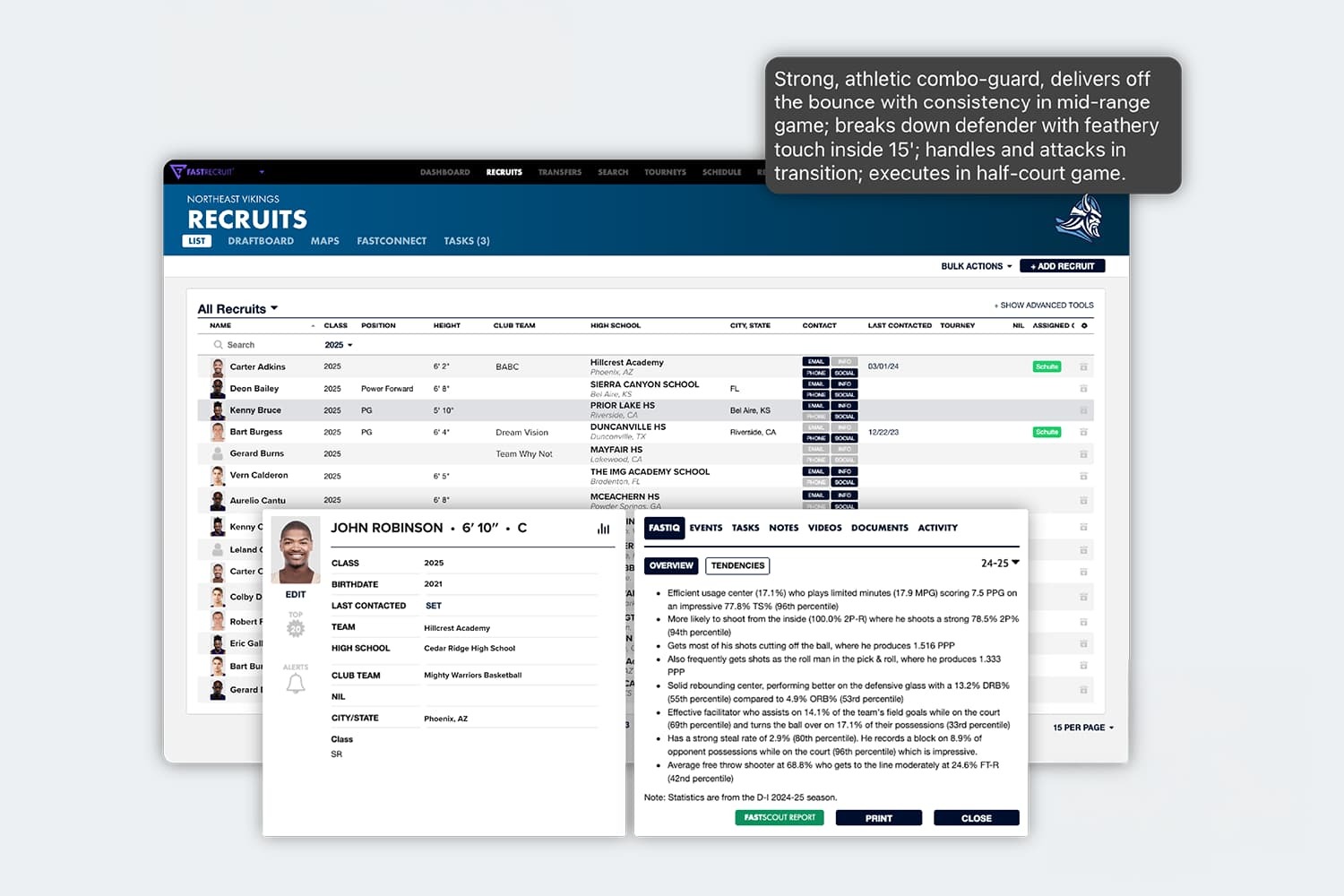 FastRecruit enables coaches to plan their future with interactive draft boards, schedule grids, and recruit information through access to high school schedules and the most Live Period data on the market.